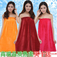 性感抹胸法兰绒可穿浴巾浴袍女 秋冬睡衣珊瑚绒美容院浴裙女裹胸