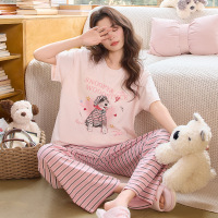 带口袋睡衣女2026新款夏季雪花彩棉可爱卡通学生家居服套装可外穿