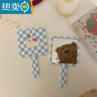 敬平原创款/黄色蓝色格子棋盘格子小狗手持化妆镜子便携随身迷你镜子 蓝色一个便携式用镜