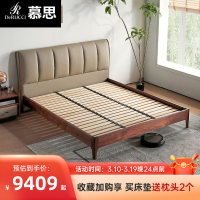 实木床 主卧大床双人床黑胡桃木床真皮床软靠床现代简约