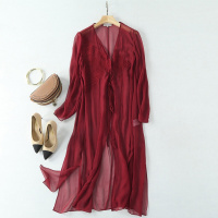 2018春季新款女装女式真丝欧根纱夏季外披外套女中长款衬衫