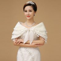 秋冬新款结婚新娘婚纱礼服白色披伴娘晚会年会旗袍披肩短外披女装白色