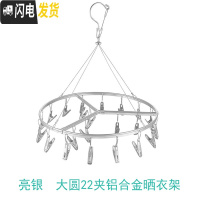 三维工匠铝合金不锈钢多夹子内衣晾衣架晒袜子衣服功能挂钩晾晒架家用 加粗银色晾晒架大圆22夹银夹 1个