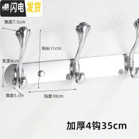 三维工匠挂衣钩壁挂不锈钢衣钩排钩后墙壁衣帽钩挂衣服钩浴室免打孔挂钩 银色鸭舌6钩粘钉两用