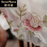 珊诗丽定制刺绣窗纱田园卧室客厅棉麻纱帘罗马帘成品窗帘纷飞纷飞