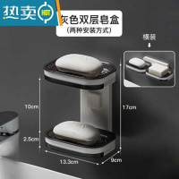 敬平肥皂盒免打孔创意壁挂式卫生间双层沥水香皂盒家用浴室香皂架 灰色(双抽款)带沥水托盘