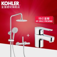 科勒花洒 齐悦恒温淋浴花洒套装 三出水恒温淋浴柱 K-99741T 搭配 齐悦单把单孔冷热水龙头 K-16027T 套餐