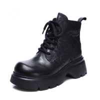 手抓纹头层牛皮马丁靴女冬季新款英伦风轻便复古百搭厚底短靴