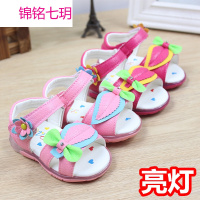 锦铭七玥2017夏季女宝宝凉鞋小童鞋露趾闪灯学步鞋新款婴儿鞋韩版公主鞋子