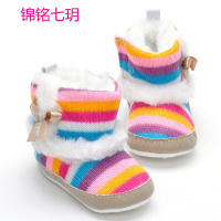 锦铭七玥清仓外贸原单宝宝婴儿鞋0-1岁彩虹保暖棉鞋彩色条纹学步鞋