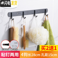 三维工匠免打孔黑色北欧风挂衣钩不锈钢挂钩试衣间卫生间衣帽钩厨房排钩 雅黑圆钩4钩粘钉两用(买二送一