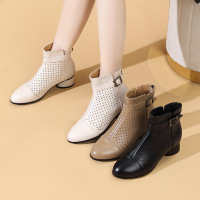 2026春夏季软底凉靴后拉链镂空透气洞洞马丁靴女中跟复古牛皮网靴