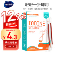 海氏海诺 16支装一次性碘伏消毒液棉棒随身便携伤口清洁新生儿肚脐消毒棉签
