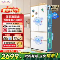 [美的出品]华凌520 超薄零嵌法式多门冷藏冷冻双净味一级能效家用大容量风冷无霜电冰箱 HR-520WUFPZ雾隐白