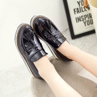 O韩版单鞋女2017春季新款低帮鞋厚底松糕鞋百搭流苏女鞋平底乐福