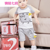 锦铭七玥2018夏装韩版搞怪恐龙印花婴儿套装儿童宝宝男童两件套衣服潮款童