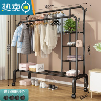 敬平简易晾衣架落地卧室内挂衣架房间宿舍家用凉衣杆阳台晒衣服的架子 高性价比?120cm-黑-上下三网+侧钩?高配热卖 中