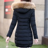 冬季韩版大码连帽中长款加厚羽绒服棉服女 户外运动细线保暖连帽羽绒服女