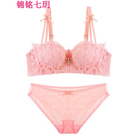 锦铭七玥蕾丝无钢圈女士文胸套装薄款日系甜美胸半杯白色内衣聚拢胸罩