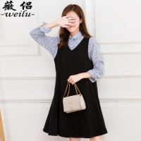 薇侣2017秋季新款胖MM加肥加大显瘦无袖背心裙V领A字连衣裙气质小黑裙