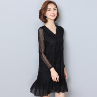 顺崇2018大码春季女装2018胖妹妹加肥加大显瘦长袖蕾丝连衣裙