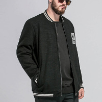 时尚帅气胖子大码宽松夹克加肥加大显瘦秋季新款外套肥佬男装黑色