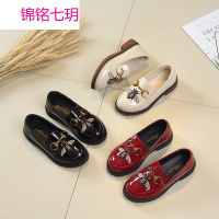 锦铭七玥女童鞋子春金属单鞋韩版平底表演出黑色漆光小皮鞋中大儿童