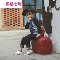 锦铭七玥宋仲基同儿童鞋女宝星星小白鞋韩版真皮做旧小脏鞋男童板鞋