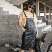 2018春秋新款真皮皮裙女中腰吊带裙时尚韩版百搭裙绵羊皮连衣裙潮