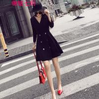 YIBUSHENG法式小众西装裙牛仔百褶连衣裙女季小香风复古收腰显瘦短袖裙子