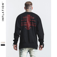X*2018春装插扣袖高街字母印花下摆开叉男式圆领卫衣