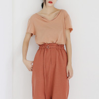 2018女秋款T恤韩版新款马卡龙色棉T热卖套头V字领多色女上衣71023