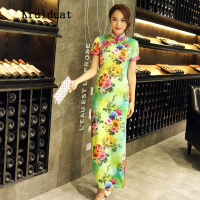 Kruidvat 奈琴尔2016秋冬新款旗袍丝绸改良修身复古双层中袖宴会装晚礼服连衣裙HF
