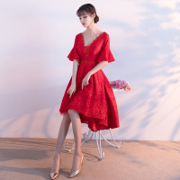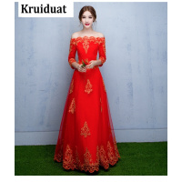 Kruidvat新款短款一字肩长袖结婚晚礼服女显瘦长款红色