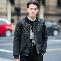 步来褶惠权志龙同款冬装潮棉衣韩版加绒柳钉装饰立领男士外套夏