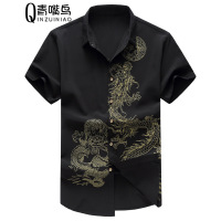步来褶惠夏季中国风龙纹图案短袖衬衫男加肥加大码印花衬衣胖人潮男装肥佬夏