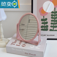 敬平ins风简约镜子化妆镜学生宿舍台式桌面可立双面镜家用便携梳妆镜 小号椭圆-粉色+白板笔便携式用镜