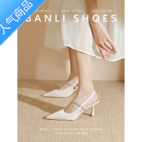 SUNTEK班丽 白色尖头水钻高跟鞋气质通勤包头凉鞋女细跟2023夏季新款
