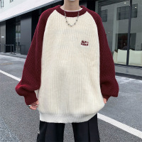 毛衣男春秋新款美式插肩袖宽松学院风潮牌针织衫圆领套头毛衣外套