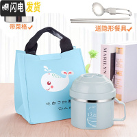 三维工匠304不锈钢保温饭盒上班族带饭学生女快餐杯分隔型成人男密封带柄 粉色1000配送餐具蓝保温包