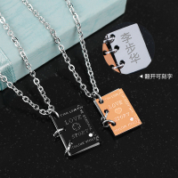 情侣项链一对学生饰品简约文艺生日礼物男女锁骨书本钥匙吊坠刻字