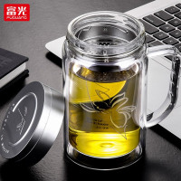 富光玻璃杯带把手男女士办公水杯大容量家用过滤茶水分离泡茶杯子