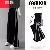 YIBUSHENG胖mm特大码300斤冰丝阔腿裤女季薄款撞色显瘦直筒宽松休闲裤子