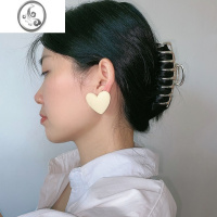 JiMi高级感玫红奶白色夸张大桃心耳钉耳夹无耳洞辣妹爱心耳环女耳饰女