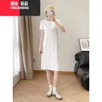 YIBUSHENG中长款过膝白色短袖连衣裙女2024新款洋气宽松开叉t恤裙子
