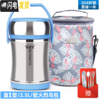 三维工匠上班族304不锈钢保温饭盒真空超长便携餐盒多层学生便当桶 蓝I型提锅2.5+火烈鸟圆包+餐具3件套