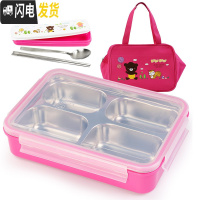 三维工匠韩国304不锈钢小学生饭盒儿童分格隔便当盒防烫餐盒四格餐盘带盖 四格粉透+袋+餐具