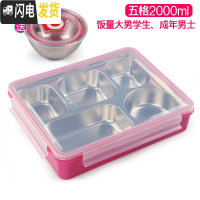 三维工匠韩国 不锈钢成人学生饭盒分格便当盒儿童餐盘食堂防烫带盖 五格粉透2000