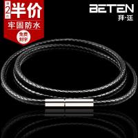 纯银牛皮绳项链绳子男个性黑色琥珀吊坠绳挂绳黄金翡翠玉坠绳