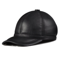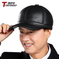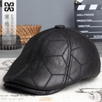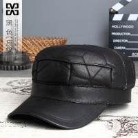 海宁真皮绵羊皮羊毛皮毛一体平顶帽冬季中老年男鸭舌帽老人皮帽子黑色